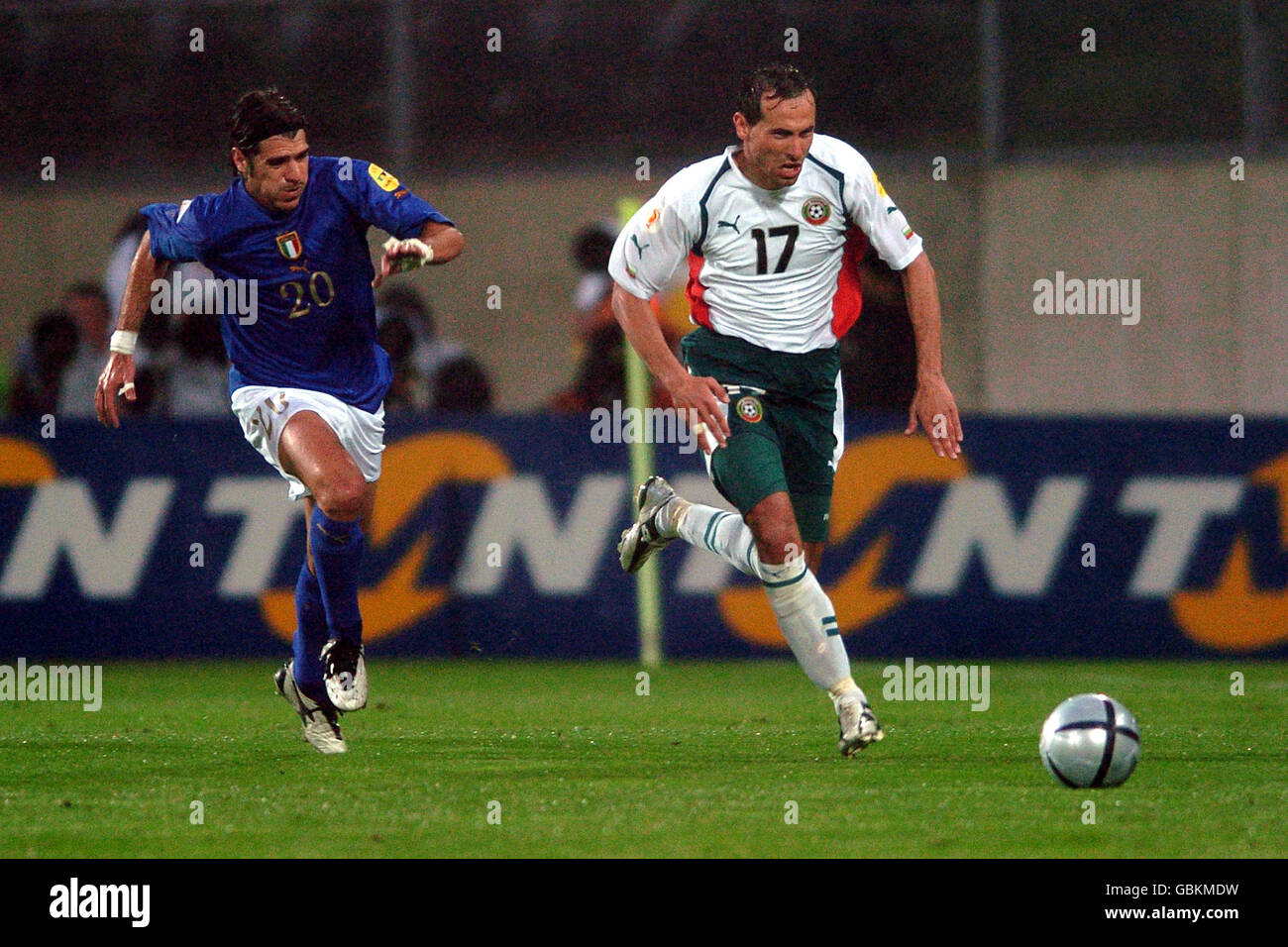 Italy 2 Bulgaria 1 In 2004 In Guimaraes Milen Petkov And Bernard Corradi Battle For The Ball In Group C At Euro 2004